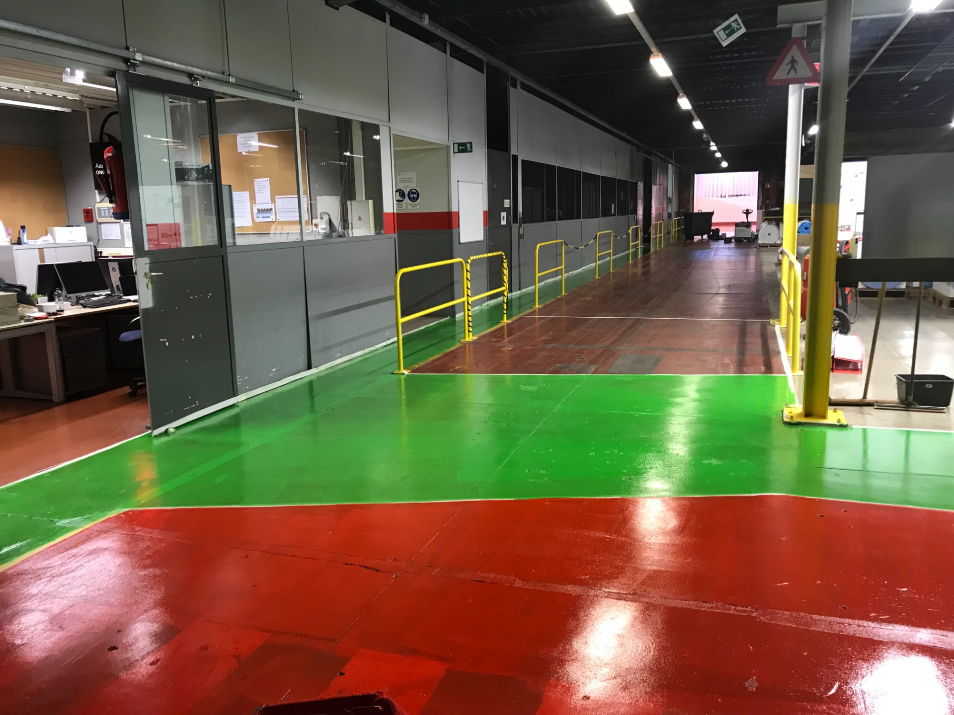 Verven van wandel zones voor arbeiders en bezoekers