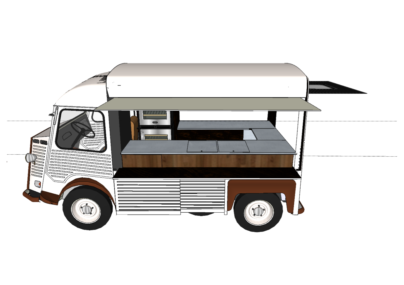 Steeds werden er voorontwerpen in 3 D gemaakt van elke foodtruck die in productie genomen werd