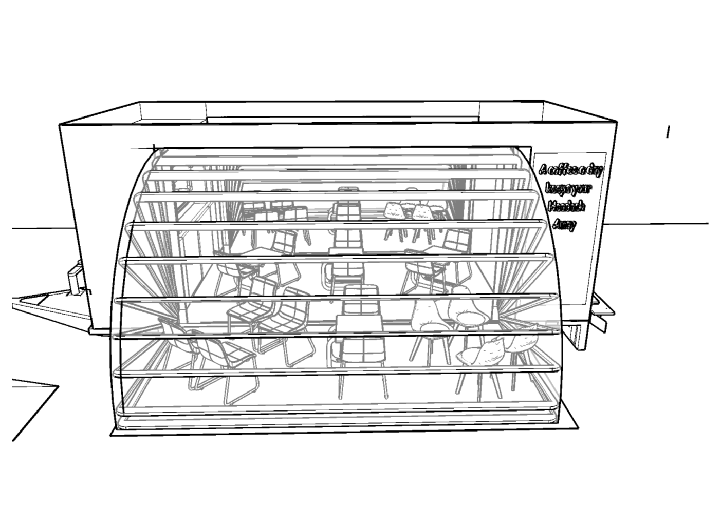 Voorontwerp in 3D zodat de klaant een idee kreeg hoe de trailer eruit zal zien